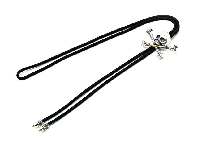 ギフト対応【Cross Bone Skull Loop Tie】 商品詳細 【Jango/ジャンゴ】の「Cross Bone Skull Loop Tie/クロスボーンスカルループタイ」になります。 存在感のあるクロスボーンを使用したループタイです。 ストッパー、剣先もオリジナルで製作し、裏のストッパーはお好みの位置で簡単に調整できます。 ロープはレザーではなく柔らかくしなやかなポリエステル素材の高強度パラコードを使用。 紫外線による色焼けにも強く グリース等の整髪料や汗も簡単に洗え、シャツでもTシャツでも使えるアイテムです。 【品番:JNT-14】 【カラー:シルバー×ブラック】 【素材:Silver925×Nylon】 【サイズ:縦3.5cm×横5.3cm×ロープ100cm】