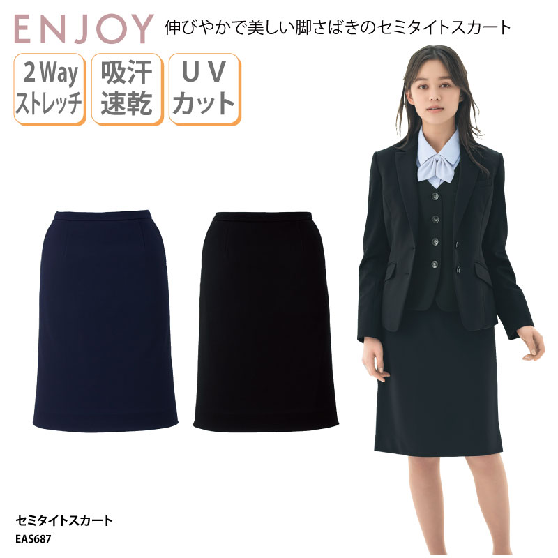 シワになりにくく着崩れしない!体型の悩みもカバーしてくれるノンストレスシリーズ【スカート/スーツ/レディース】【PT2倍&10%OFFクーポン対象 10/17 10時迄】 事務服 セミタイトスカート EAS652 ネイビー ブラック チャコール オールシーズン ENJOY オフィス 5-21号