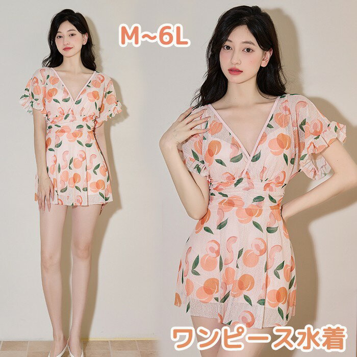 M~6L ワンピース水着 桃柄 ぽっちゃり 水着 大きいサイズ 体型カバー 服みたいな 韓国風ワンピース水着 桃柄 ぽっちゃり 4L 5L 6L 水着 大きいサイズ 体型カバー 服みたいな 韓国風 露出控えめ 可愛い Vネック おしゃれ ショートパンツ ビーチ プール 夏 リゾート 海 温泉 オールインワン オトナ女子 温泉 セクシー 大人 ママ水着 20代 30代 40代