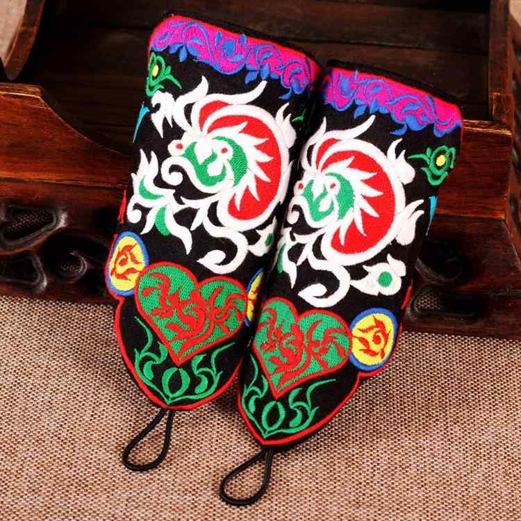 【予約販売5~12営業日での発送】エスニック グローブ レディース フィンガーレス 立体 カフス ブレスレット リストバンド ダンス 舞台 刺繍 ペア 1個売り キャンバス 中国 おしゃれ 花 赤 青 ピンク