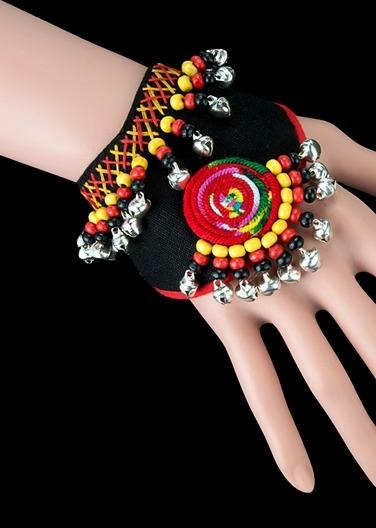 【予約販売5~12営業日での発送】フィンガーレスグローブ レディース カフス ブレスレット リストバンド ダンス 舞台 刺繍 鈴 ウッドビーズ 1個売り 中国 レトロ おしゃれ 花