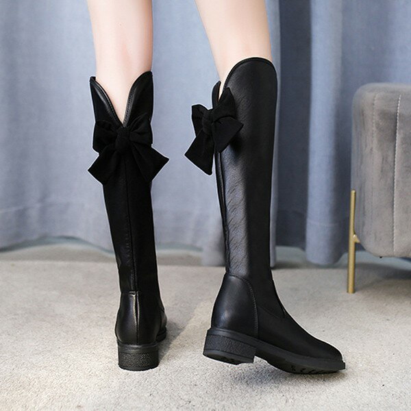 太めのチャンキーヒールで長時間歩いても疲れにくく、歩行時の安定感抜群。高すぎず、低すぎず、ちょうどいいヒール感を実感できます。美脚ロングブーツ 25.0 チャンキーヒール シンプル 疲れない ニーハイブーツ フィット 秋 冬 太ヒール 美脚 疲れにくい 可愛い フェミニン ガーリー きれいめ 通勤 バックリボン 黒 22.0 22.5 23.0 23.5 24.0 24.5 25.0 cs093s1