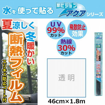 夏涼しく、冬暖かい♪断熱フィルム。菊池襖紙工場 窓ビジョンアクア 飛散防止 断熱フィルム 46cm×1.8m 透明・DN-S1【送料無料】