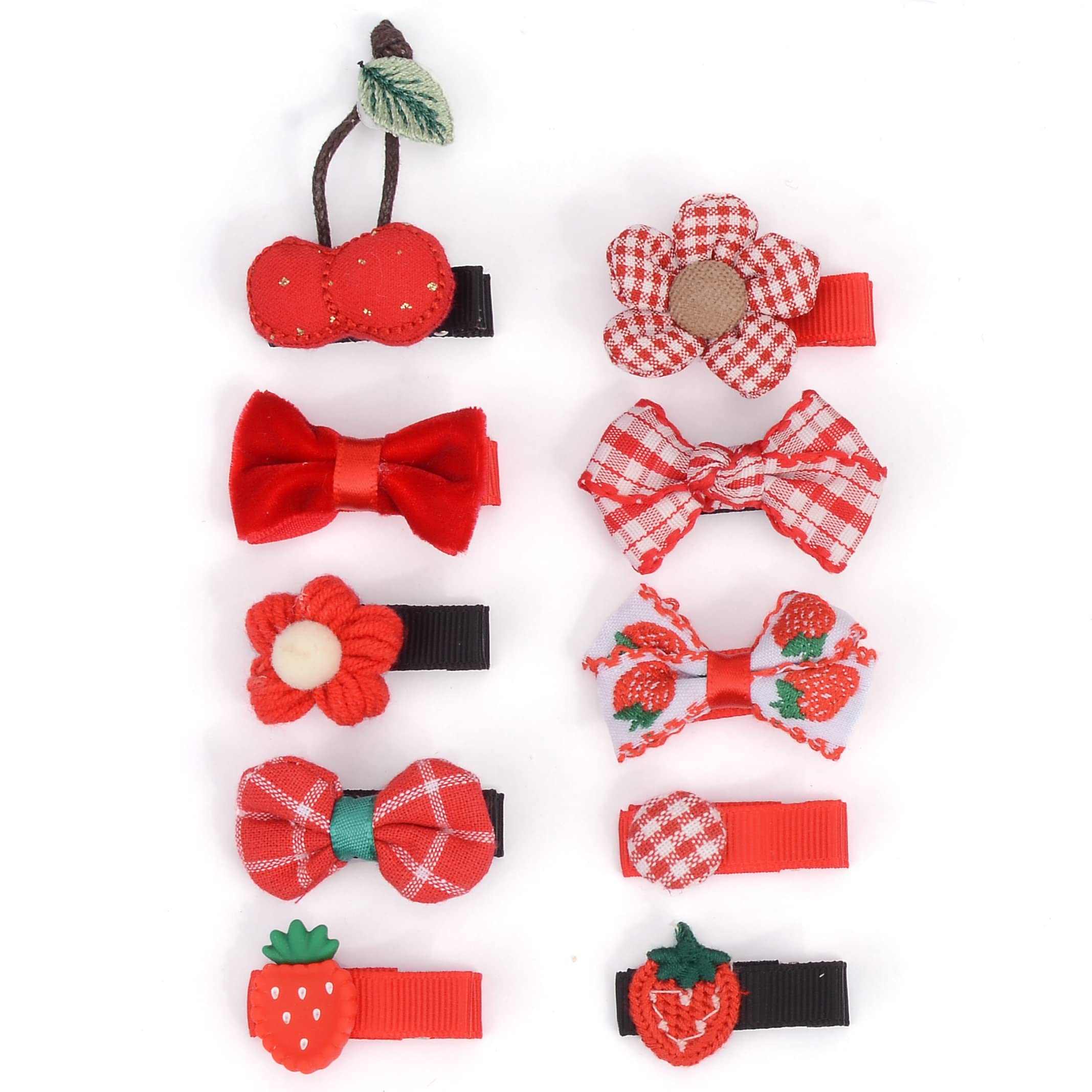 【送料無料】BIANHUAN 赤ちゃん ベビー ヘアクリップ ヘアピン 子供 こども 10点セット 髪留め 子供 へアクセサリー ヘア飾り かわいい リボン 花 七五三 孫 クリスマス プレゼント (レッド)