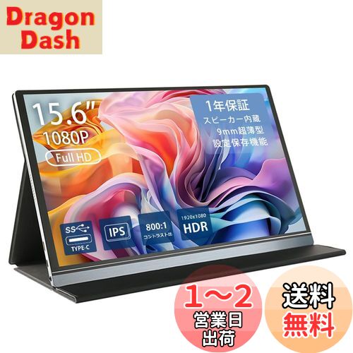 商品情報商品の説明主な仕様 【FHD解像度とIPSスクリーン】15.6インチの1080Pモバイルモニターは、16:9の高解像度画面と高色域で鮮明な映像を提供します。IPSパネル採用で広視野角と色の一貫性が保たれ、8ビットのカラーデプスと1200:1のコントラスト比により詳細な映像が実現。非光沢パネルで目の疲れを軽減し、300cd/mの明るさと60Hzのリフレッシュレートで滑らかで明るい画面を楽しめます。br【VESA対応&スタンド付き】PC、ノートパソコン、スマートフォン、タブレット、X-box、PS4/PS5、Switchなど、さまざまな機種との互換性があります。このサブモニターは、オフィス、ゲーム、デザインなど、さまざまな用途に適しています。持ち運びに便利で、優れたパフォーマンスを提供します。どこにでも持ち運び、高品質な映像体験を楽しむことができます。br【二重電気保護システム】弊社は、常にお客様の使用体験を最優先に、お客様とともに製品の改善に努め、より良いものを提供します。このモバイルモニターは、使用デバイスのバッテリー過負荷保護と高電流衝撃保護の二重保護システムを搭載しています。br【デバイスのバッテリーが過負荷保護】USB-Cケーブル1本で接続する場合、デバイスの電力が不足するとモニターは自動的にデフォルトの明るさにリセットされ、安定した接続とバッテリー保護を実現します。注意:デバイスの電力が不足の場合は、モニターが100%明るさで表示したい時に、電源を接続してください。br【モニター高電流衝撃保護】アダプターで給電時、電圧の変動による高電流衝撃から基板内の部品を守るため、高電流衝撃保護システムを導入しています。どんな規格のアダプターや電圧でも、モニターはデフォルトの50%輝度で起動します。