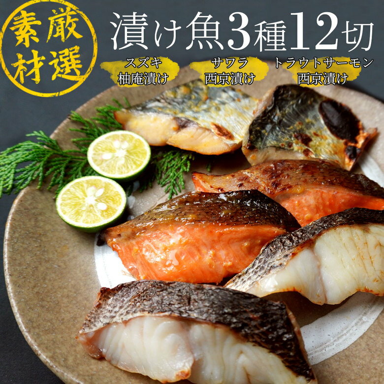 鱸(スズキ)柚庵漬け×4切、トラウトサーモン西京漬け×4切、鰆(さわら)西京漬け×4切漬け魚セット 【3種12切れ】 送料無料 漬け魚 セット 漬魚セット 焼き魚セット 焼魚セット 詰め合わせ 切り身 西京漬け ギフト 国産 売れ筋 魚 西京焼き 柚庵漬け 幽庵焼き 贈答 食品 お取り寄せ グルメ お中元 御中元 おつまみ 酒 つまみ ギフトセット おかず