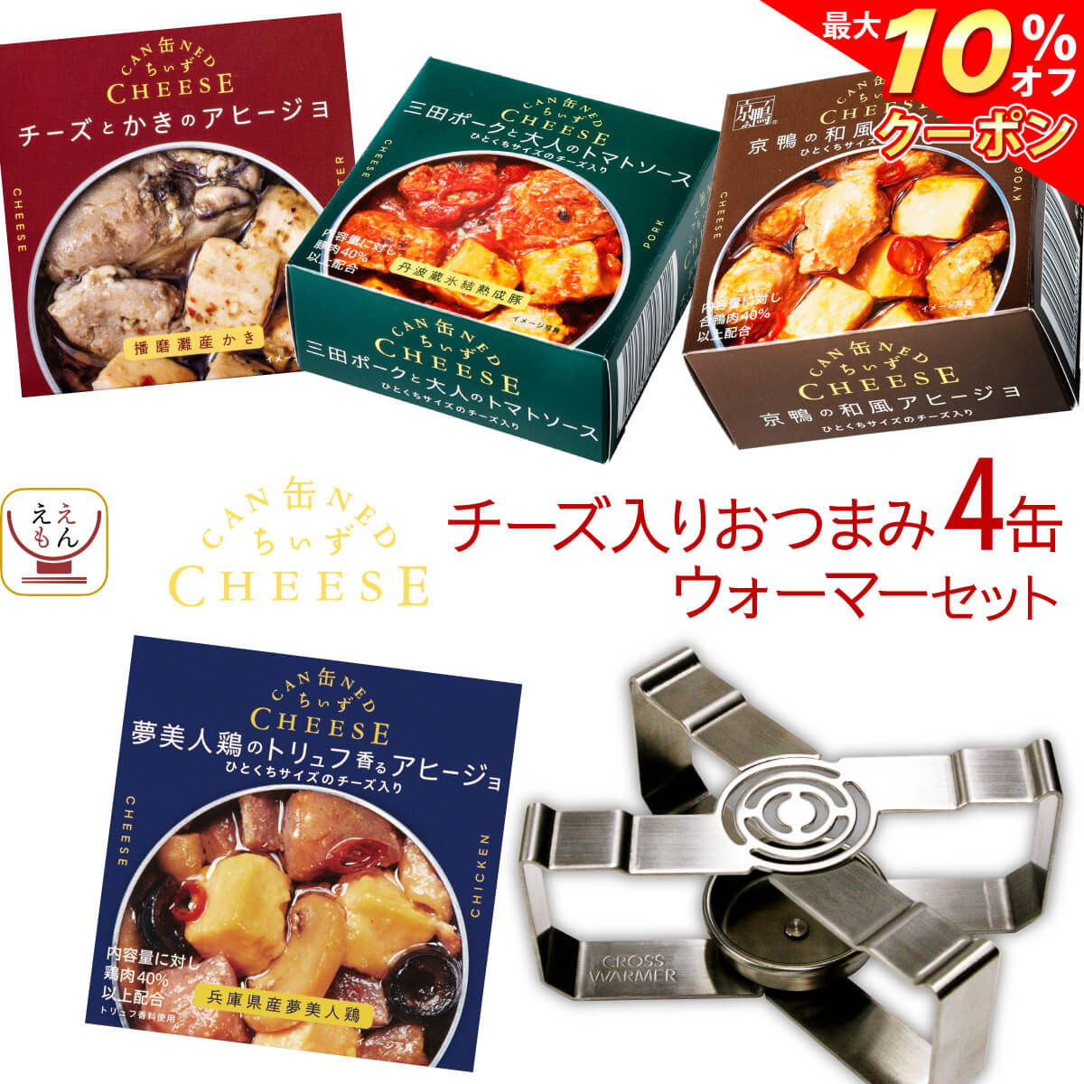 内容量 缶ちぃず チーズ と かき の アヒージョ 85g 缶ちぃず 三田ポーク と大人の トマトソース 75g 缶ちぃず 京鴨 の 和風 アヒージョ 75g 缶ちぃず 夢美人鶏 の トリュフ 香る アヒージョ 70g 缶つまウォーマー 4種 4缶 & 缶つまウォーマー1個 原材料 欄外に表示 賞味期限 製造日より3年 製造メーカーからの仕入商品の為 賞味期限はお届け時のものではございません。 予めご了承くださいませ。 保存方法 開缶後はすみやかにお召し上がりください。使い残しはガラスなどの容器に移して冷蔵庫に入れ、お早めにお召し上がりください。 品名 CROSS WARMER(缶つまウォーマー) 材質 ステンレス(SUS304) サイズ 46mm×122mm×52mm(閉じた状態) 使用燃料 アルミカップ入りキャンドル(キャンドル径38mm 高さ18mm程度)(2個封入) 使用方法 お好みの缶づめを開蓋後この「CROSS WARMER」を使用して 温めた状態でお召し上がりが可能です。 【ご注意】※液のない缶づめには使用できません。 ※加熱燃料は、当社推奨品(アルミカップ入りキャンドル)以外は絶対に使用しないでください。 《商品を正しくご使用いただくために、付属の取扱説明書を必ずお読みください。》 備考 【返品について】お客様のご都合による返品はお受けできません。 ※メーカーの都合により、パッケージ及び内容などが予告なく変更される場合がございます。ご了承ください。 こんな時に、こんな方に 贈り物 結婚祝い 御結婚御祝 祝御結婚 寿 内祝 結婚内祝 引出物 結婚 祝い の お返し 出産祝い 出産 祝い お返し 御出産祝 御出産御祝 出産内祝 命名 お見舞い お返し 御見舞 御伺い 快気祝 御見舞い 御礼 全快 本復 快気 内祝い ご挨拶 お歳暮 御歳暮 お中元 御中元 お年賀 御年賀 帰歳暮 暑中お見舞い 暑中 御見舞 残暑お見舞い 残暑 御見舞 寒中お見舞い 寒中 御見舞 イベント 記念日 行事 感謝 御礼 お礼 御祝 御挨拶 粗品 御手拭 賞品 景品 参加賞 記念品 祝 結婚記念日 錫婚式 銅婚式 銀婚式 金婚式 お誕生日 誕生日 御誕生日 祝御誕生日 母の日 祝母の日 父の日 祝父の日 敬老の日 祝 敬老 長寿 の 御祝い お祝い お返し 初節句 七五三 入園 卒園 入学 卒業 進学 就職 転勤 昇進 新築 引越し 餞別 開店 成人 御祝 祝御成人 寿福 賀寿 祝還暦 還暦 祝古希 古希 祝喜寿 喜寿 祝傘寿 傘寿 祝米寿 米寿 祝卒寿 卒寿 祝白寿 白寿 祝百寿 百寿 祝 百賀 新盆 初盆 香典返し 法事 法要 四十九日 偲び草 忌明け 御布施 バレンタイン ホワイトデー 弔事 香典 のお返し 年忌 法要 志 満中陰志 御供 御仏前 御佛前 粗供養 一周忌 ○ 回忌志 シーン お母さん お父さん おばあちゃん おじいちゃん 姉 妹 兄 弟 への ギフト 子供 への 仕送り 単身赴任 の 家族 への 贈りもの 友人 好きな人 大切な人 の 誕生日プレゼント 自分への ご褒美 贅沢 プチ贅沢 結婚式 や 結婚お祝い の プチギフト 返礼品 贈答 贈答用 贈答品 おみやげ お土産 忘年会 新年会 バースデー パーティー 二次会 の 景品 新居 転居 引っ越し の ご挨拶 挨拶 手土産 用 職場 の 上司 先輩 後輩 同僚 の 退職 定年退職 お祝い の 贈物 宅飲み の おつまみ ええもん広場 では 慶事 弔事 の 包装 熨斗 を承ります。~ 缶つま 関連商品 ~ ちょい飲み 4缶&ウォーマーセット セットで選べる 8缶&ウォーマーセット セットで選べる 10缶 選べる 贅沢6缶 当店の缶詰・缶つま一覧はこちら 高級 缶詰め 国分 オリジナル 缶ちぃず と ウォーマー 詰め合わせセット 缶詰 = 保存食 だけはもう古い! ありそうでなかった、 チーズ が入った おつまみ 缶詰 。 厳選した 素材 を各々ベストな製法で 調理 した究極の逸品。 ウォーマーで 温める とさらに 美味しい 、 アウトドア キャンプ にも おすすめ 。 惣菜 和食 洋食 おかず 缶つま お惣菜 ギフト セット として 人気 です。 アレンジ 次第で 美味しい つまみ や 料理 の一品に! ご用途 缶詰め は、 常温保存 長期保存 出来るので 災害用 防災 食品 や 非常食 保存食 備蓄 食料 常備食 ストック ローリングストック に最適です。 アウトドア キャンプ 登山 や 一人暮らし 単身赴任 高齢者 お年寄り や 祖父 祖母 両親 子供 への 手土産 食べ物 仕送り に 人気 ! まとめ買い で 更に お買い得 。 毎日の お弁当 美味しい 食事 おかず や 朝食 ランチ 夜食 ご飯のお供 お酒 の おつまみ 酒の肴 にどうぞ。 ギフト 包装 ・ ギフトラッピング ・ のし対応 可。 3種類の 包装紙 と ギフトボックス をご用意! 熨斗 の 名入れ メッセージ OK 食べ物 の 贈り物 贈答 プレゼント ギフト 実用的 誕生日 お礼 お祝い 内祝い お返し に 人気 。 遅れてしまった 季節のご挨拶 にも。 遅れてごめんね の気持ちを込めて 贈れる ギフト です。 用途: 母の日 父の日 お中元 御中元 敬老の日 お歳暮 まだ間に合う 出産祝い 結婚祝い 快気祝い お見舞い 御供 香典返し バレンタイン ホワイトデー 女性 男性 10代 20代 30代 40代 50代 60代 70代 80代 ええもん 紹介 レトルト 食品 缶詰 ええもん広場 店は、 アサヒグループ食品 アマノフーズ フリーズドライ食品 をはじめ インスタン