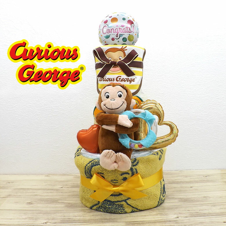 ★ おむつケーキ 送料無料 ★ ≪利用シーン≫ 出産祝い、ベビーシャワー、誕生日 (0歳、1歳)、ハーフバースデー、男の子、女の子、男女兼用 / ラッピング無料 メッセージカード無料 のし無料/ 3段 オムツケーキ ■おむつは、下記からお選びいただけます。 パンパース新生児(~5kgのベビー用/テープ): 32枚 パンパースSサイズ (4~8kgのベビー用/テープ): 28枚 パンパースMサイズ (6~11kgのベビー用/テープ): 24枚 メリーズ新生児(~5kgのベビー用/テープ): 27枚 メリーズSサイズ (4~8kgのベビー用/テープ): 23枚 メリーズMサイズ (6~11kgのベビー用/テープ): 20枚 ■おさるのジョージのラトル ■スタイ ■ミニタオル(サイズ:15×15cm) ■ループ付きタオル(サイズ:34×34cm) 【大きさ】約直径20cm×高さ40cm ※他の商品との同梱不可です。 【ラッピングについて】 おむつケーキは、透明のOPP袋で包んでリボンをおつけしています。(無料) 中身が見えるので、取扱いにも安心で、すぐに使わない場合はそのまま飾れます。 中身が見えないラッピングをご希望の場合は有料(+150円)にて承っております。 ご注文時にラッピング変更ボタンで選択ください。 (※中が見えないので取扱いには十分ご注意くださいね) ご希望の方に持ち運びに便利な手さげ袋を同梱しています。 また、ケーキにメッセージカードをおつけすることが可能です。ご希望の方は、ご注文時の備考欄にメッセージ本文をご入力ください。(60文字以内/携帯絵文字不可) のしをご希望の際は、短冊のしに限り承ります。 備考欄にのしの内容をご記載ください。 【明細書および納品書について】 ギフト商品のため、金額のわかるような書類は一切同梱しておりません。同梱をご希望の方は、ご注文時の備考欄にご記載ください。 ※商品をご注文者様以外の方にお届けする際は、ご注文者様に別途郵送も可能です。領収書も同様に承ります。 【直送する場合のご案内】 贈り物として当店から直接相手の方へお送りすることも可能です。その際の送り状のご依頼主様欄は、ご注文者様のお名前・ご住所・電話番号を記載し、備考欄に「荷送り主」としてバオ・バブの名前と電話番号を記載しております。 会社名やグループ名でお贈りされる場合は、ご依頼主様欄を当店として、備考欄に「出荷ご依頼主様」として、ご指定のお名前を記載することも可能です。 ルールはございませんので、ご希望がありましたら何なりとお申し出ください。 【日付指定できます!】 ご注文時にご希望の日時をご指定ください。 お急ぎの方は、備考欄に「何日までに欲しい!」など、ご記載くだされば、可能かどうかメールでお返事いたします。おさるのジョージのベビーアイテム4点付き出産祝いギフトおさるのジョージのベビートイとスタイ、タオルがついたオムツケーキです。