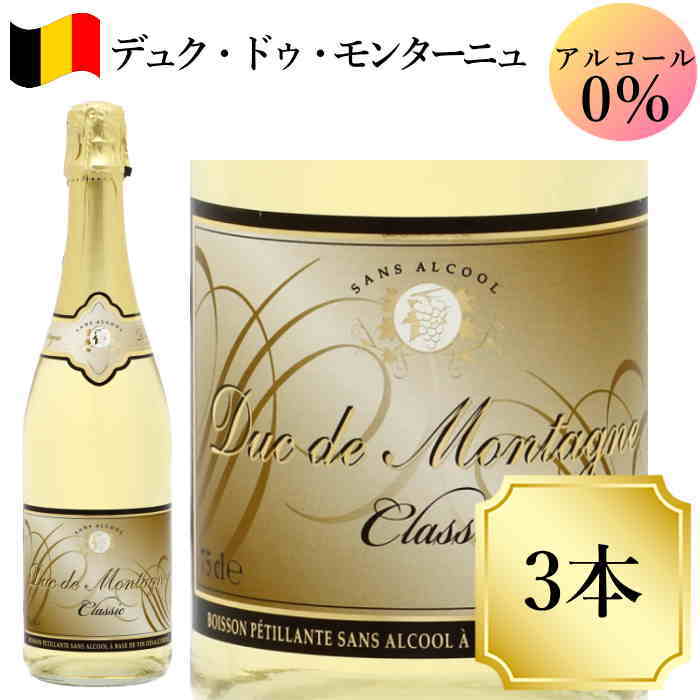 シャンパン のような泡立ち0.05%未満 カロリー約1/3 ポリフェノール たっぷり ノンアルコール スパークリングワイン 送料込みデュク・ドゥ・モンターニュ750ml 3本セット ワイン ノンアルコールスパークリングワイン 750ml ベルギー ワイン 送料無料 女子会 におすすめ c ノンアルワイン