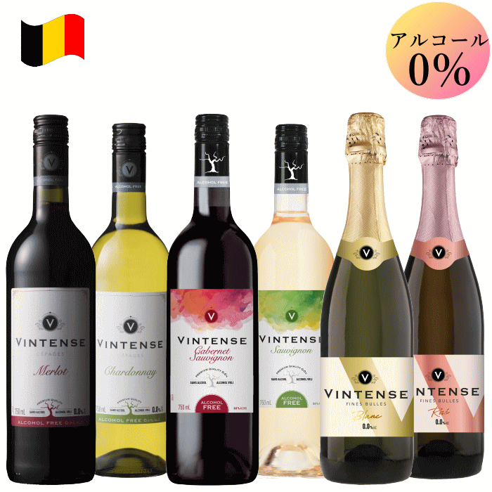 アルコール0.0% ヴィンテンスシリーズ総ラインナップノンアルコールワイン 飲み比べ 6本セット ヴィンテンス 赤 白 スパークリング ロゼ 750ml ベルギー ワイン 送料無料 女子会 ワインセット ノンアルワイン