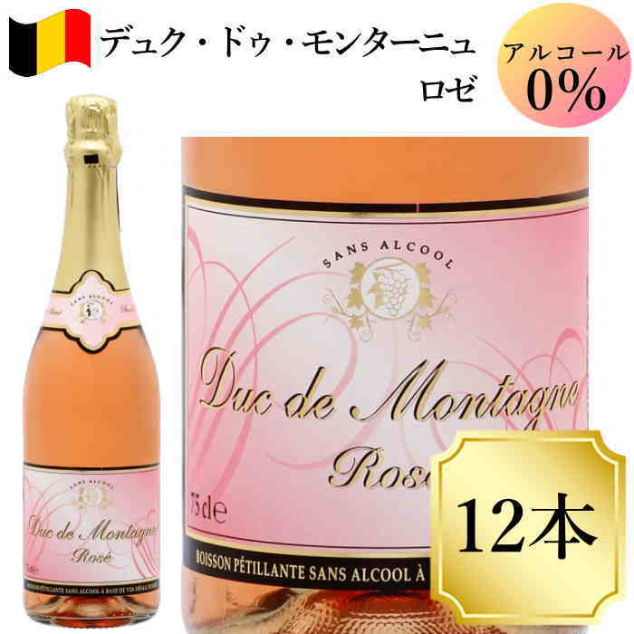 シャンパン のような泡立ち カロリー約1/3 ポリフェノールたっぷり ノンアルコール スパークリングワイン【★お得な送料無料12本セットになりました!】デュク・ドゥ・モンターニュ ロゼ ワイン 12本ノンアルコールワイン スパークリング 750ml ベルギー c ノンアルワイン