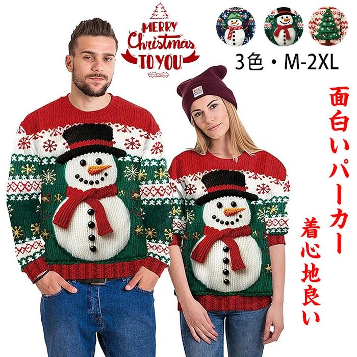 クリスマスパーカー レディースセーター ス?【送料無料】クリスマスパーカー レディースセーター イミテーションセーターデザインの醜いプルオーバーセーター スウェット 長袖 雪だるま かわいいクリスマスツリーセーター ユニセッ