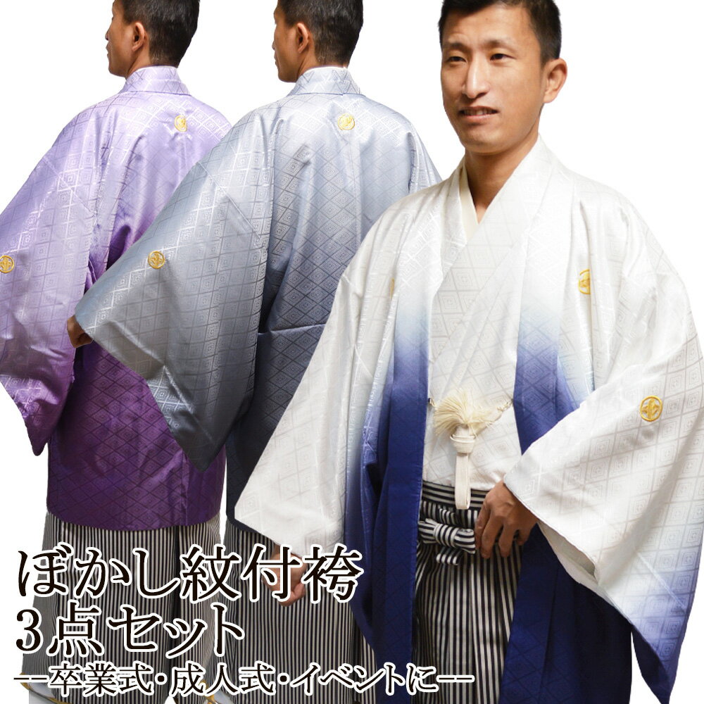 お得な販売購入 着物 羽織 袴の3点セット お値打ち 送料無料紋付袴 羽織 着物 袴 3点 セット ぼかし 紋付 袴 成人式 卒業式 結婚式 購入 販売 { 紋付 男性 男 メンズ