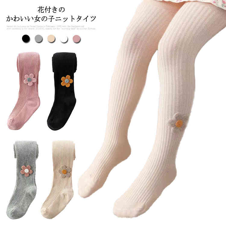 子供タイツ キッズ タイツ リブ編み 花付き 女の子 幼児 子供 靴下 赤ちゃん ニットタイツ花付き 子供タイツ キッズ タイツ リブ編み 女の子 幼児 子供 靴下 赤ちゃん ベビー ニットタイツ スパッツ 無地 おしりマチ ずり落ちにくい かわいい 送料無料