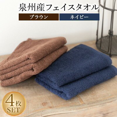 泉州産フェイスタオル4枚セット・ブラウンとネイビーを各2枚お届けします。【ふるさと納税】泉州産フェイスタオル4枚セット・ブラウンとネイビー【1082360】