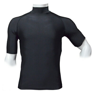 【メール便送料無料】★ストレッチ、吸汗速乾、消臭素材、紫外線カット!【送料込】【DOUBLE3(ダブルスリー )】 メンズ DW3204 BLACK 半袖インナー 筋トレ ショートスリーブ ハイネック 黒 ブラック スポーツウェア