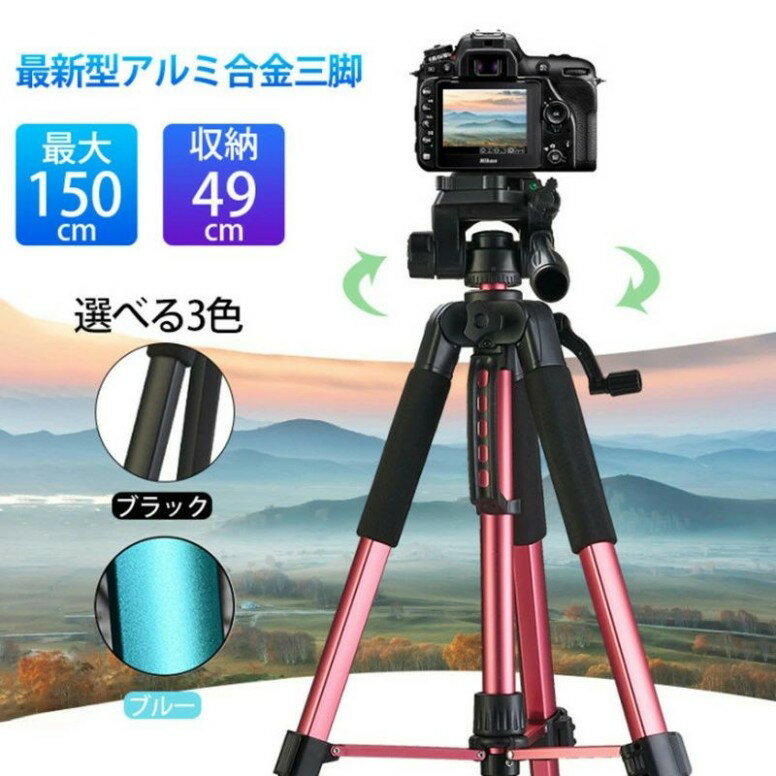 【送料無料】【3段階伸縮 最大長さ162cm】 スマホ三脚 カメラ三脚 3WAY雲台付き 折り畳み 持ち運び便利 自撮りや集合写真、生ライブ配信などに適用三脚 ビデオカメラ 一眼レフ カメラ スマホ デジカメ アルミ 雲台 360度回転 1/4ネジ 軽量 カメラ三脚 折りたたみ エレベーター 162cm 3段階 伸縮 スマホ 三脚 収納袋 水準器 持ち運び便利 コンパクト 自撮り ライブ配信 入学式 卒業式 ギフト プレゼント