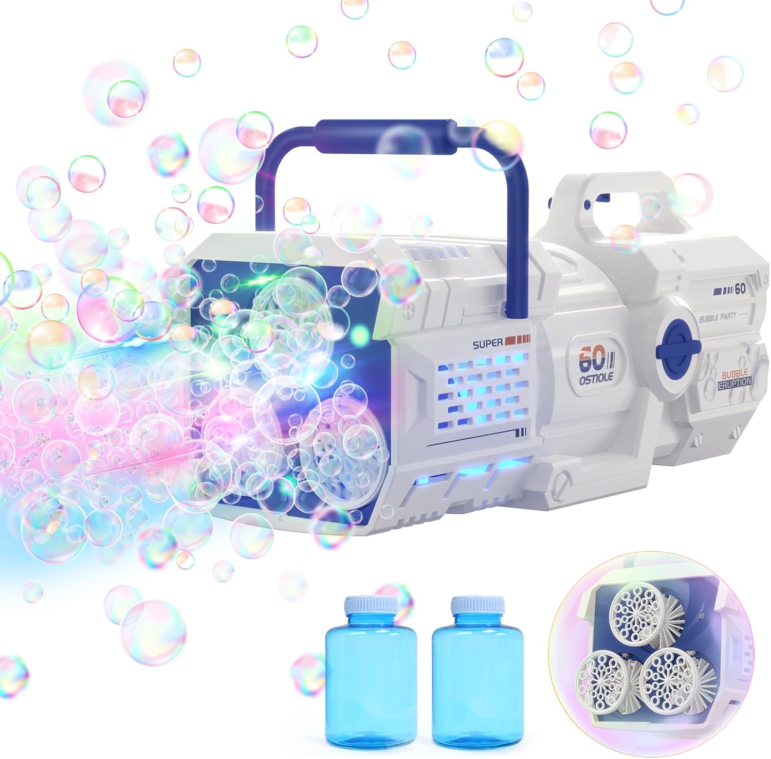 超大量泡 LED 光る ボトル2瓶シャボン玉 60泡穴 バブルガン 電動式 2in1遊び方 バブルバズーカ 超大量泡 LED 光る ボトル2瓶 バブルマシン シャボン玉製造機 USB充電式 子供向け 大人向け バズーカ砲形 雰囲気作 結婚式 誕生日 プレゼント 女の子 男の子 ギフト(ブルー)