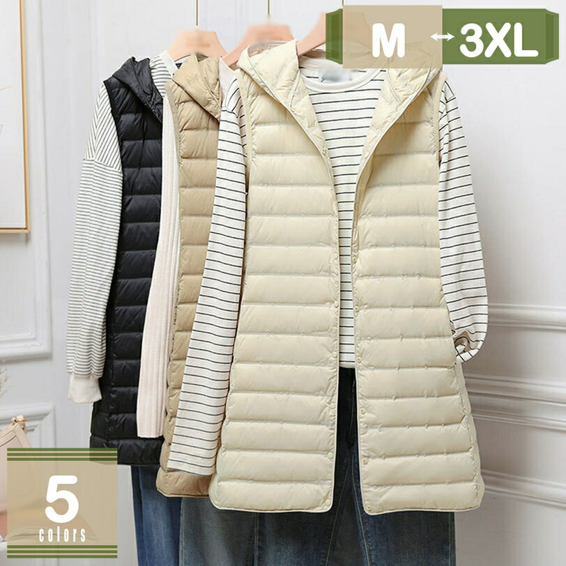 上質な羽毛で暖かい☆寒い日にピッタリダウンベスト【送料無料】ダウンベスト レディース 大人 フード付き ライトダウン インナーダウン ベスト ダウンコート ダウンジャケット アウター 上着 軽量 暖かい 黒 ベージュ 秋