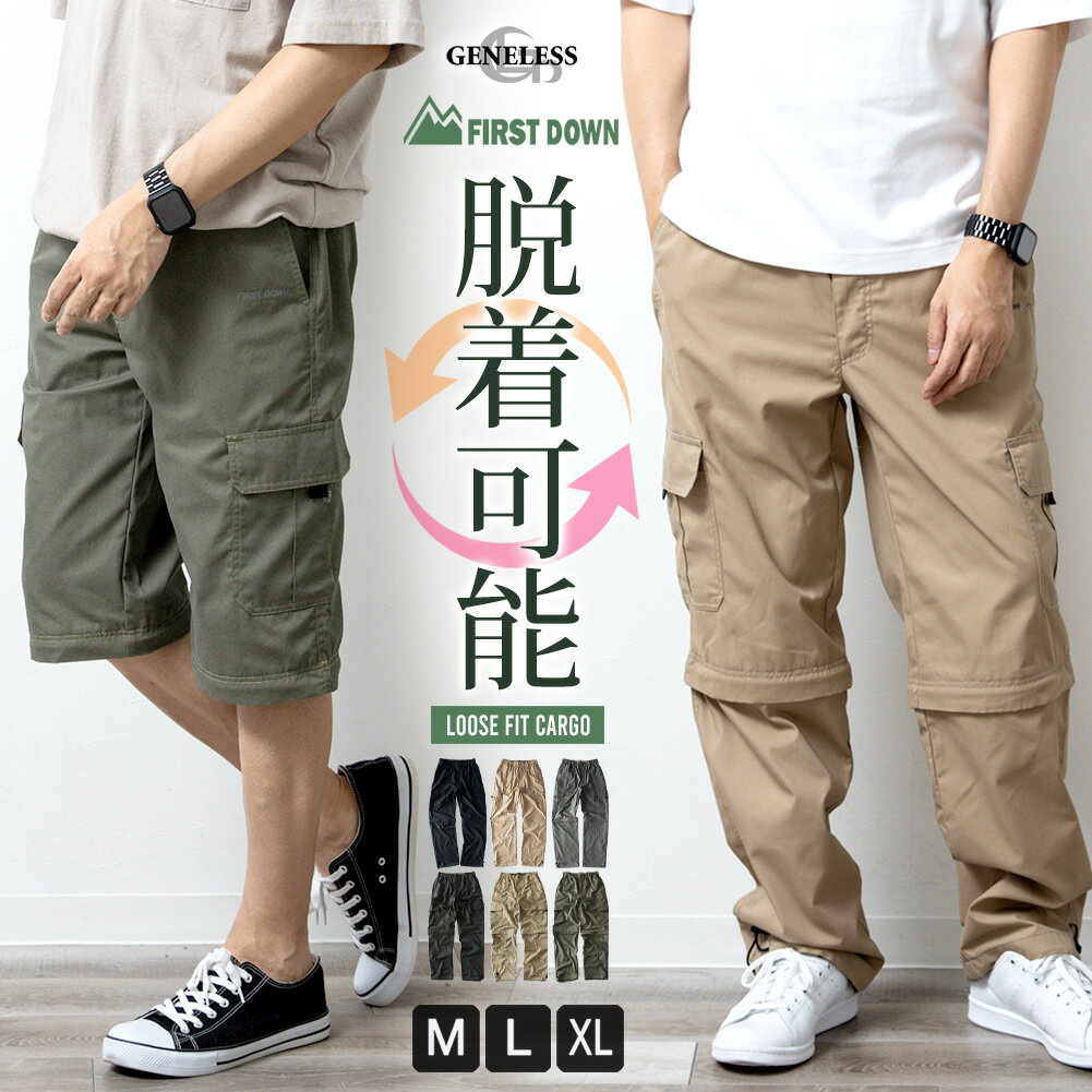 快適すぎてコレ以外履けない!秋に大活躍する3WAY楽カーゴ。パンツ メンズ 太め ミリタリー カモフラ 無地 シンプル 3WAY機能パンツ ミリタリー ロングパンツ ゴムウエスト ワイドパンツカーゴパンツ メンズ ゆったり 7分丈 迷彩 ハーフパンツ クロップドパンツ 脱着可能 3WAY M L LL XL 大きいサイズ カーキ ベージュ ブラック オリーブ ゆったり ワイド ミリタリーパンツ ルーズ 全2種 ジェネレス