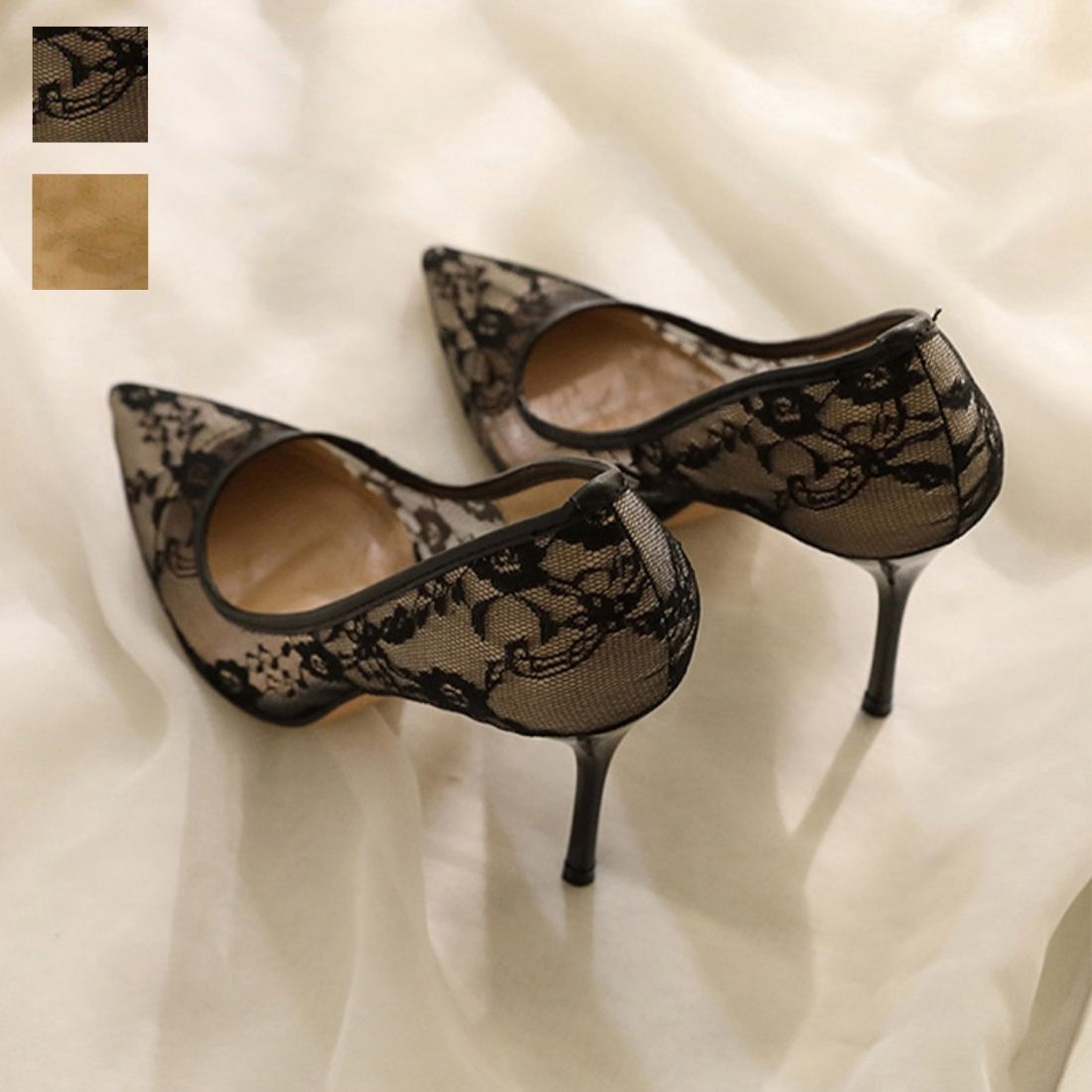 華やかな7cmピンヒールレースパンプス美脚効果抜群!ヒール7cmのレースパンプス シューズ 靴 ピンヒール ポインテッドトゥ 上品 華やか おしゃれ レース 透け感 デイリー 結婚式 2次会 セレモニー フォーマル パーティー お呼ばれ 特別 こなれ感 トレンド 美脚 スタイルアップ