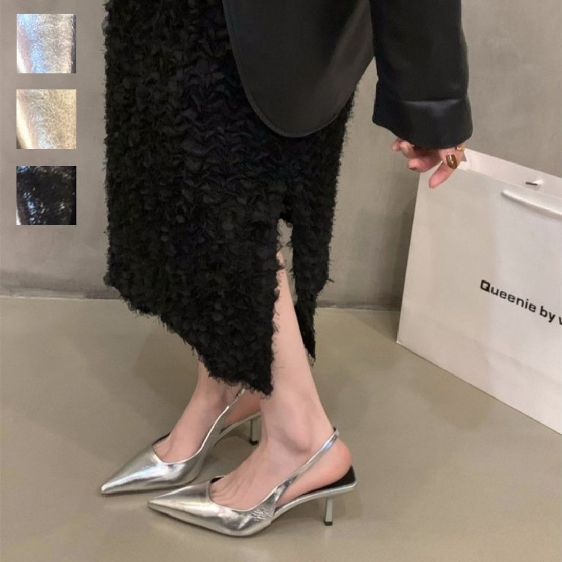 オフィスにもお出かけにもぴったりなバックストラップヒールパンプスオフィスシーンにおすすめ!バックストラップ7cmヒールパンプス ポインテッドトゥ シューズ 靴 ヒール 美脚 脚長効果 スタイルアップ セレモニー フォーマル デイリー 上品 ストラップ 洗練 おしゃれ トレンド 結婚式 パンツスタイル キレイめ