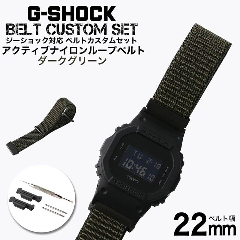【全品 国内正規品 ラッピング対応】[ 10代 20代 30代 40代 50代 60代 中学生 高校生 大学生 社会人 彼氏 彼女 プレゼント ギフト 人気 おすすめ ブランド 新生活 仕事用 おしゃれ ]G-SHOCK 対応 アクティブナイロンループベルト ダークグリーン 22mm 幅 アダプター カスタム セット Gショック ジーショック 替えベルト NYLON BELT 時計 腕時計 メンズ 交換用 バンド ストラップ 人気 おすすめ おしゃれ スーツ ジャケット ビジネス 大人 DIY MOD
