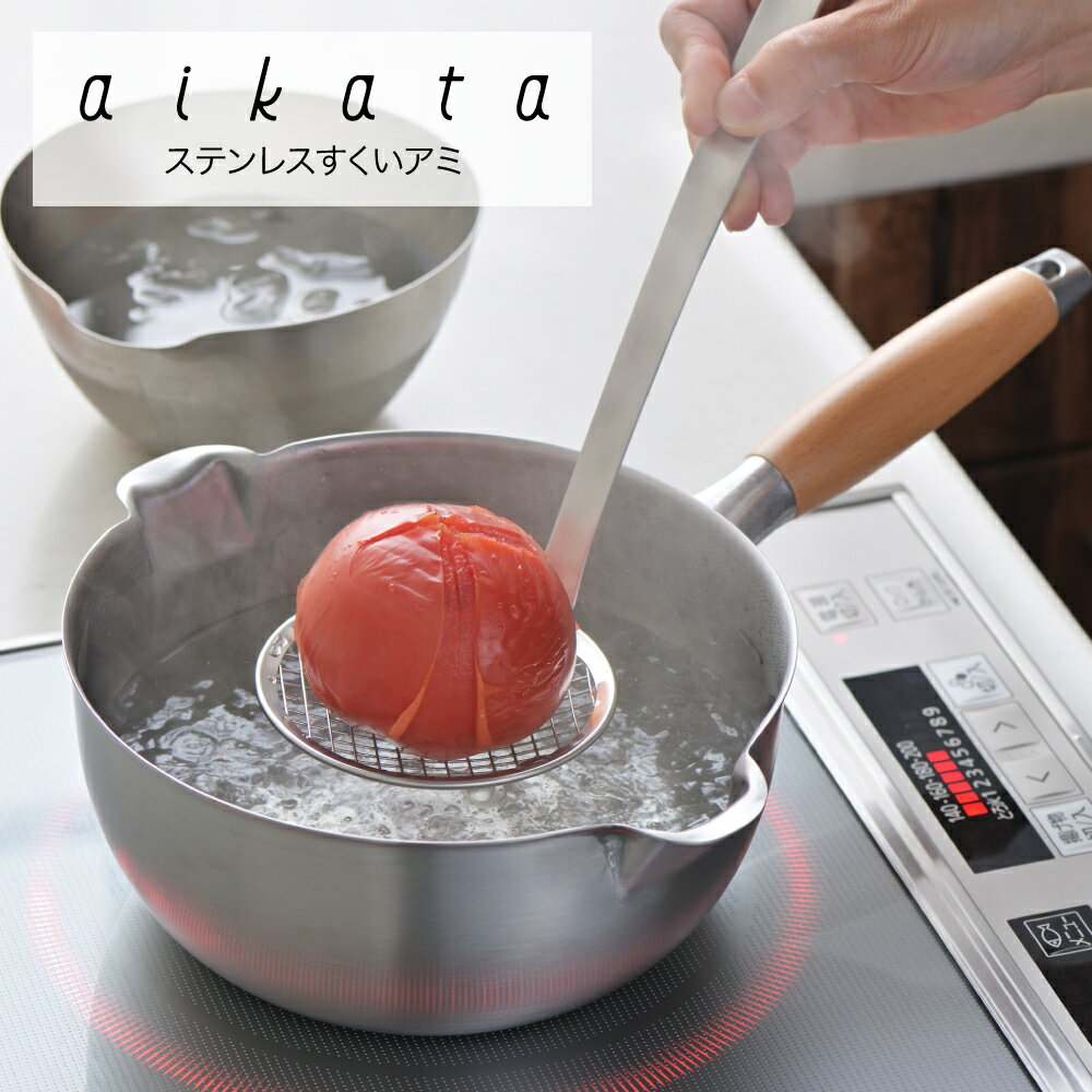 湯切れ、油切れの良いメッシュタイプのすくい網水切りアミ アイカタ すくいアミ ストレーナー ステンレス製 日本製 ( aikata すくい網 揚げアミ 湯切り 油切り メッシュ 食洗機対応 メッシュストレーナー 揚げ物すくい 水切り 穴あき お玉 おたま )【3980円以上送料無料】