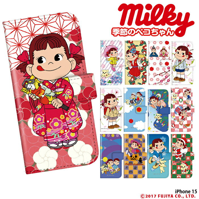 ペコちゃん iphone15 手帳型スマホケース iPhone 15 ケース 手帳型 iphone15 アイフォン15 アイホン15 カバー デザイン ペコちゃん 不二家 ミルキーハロウィン