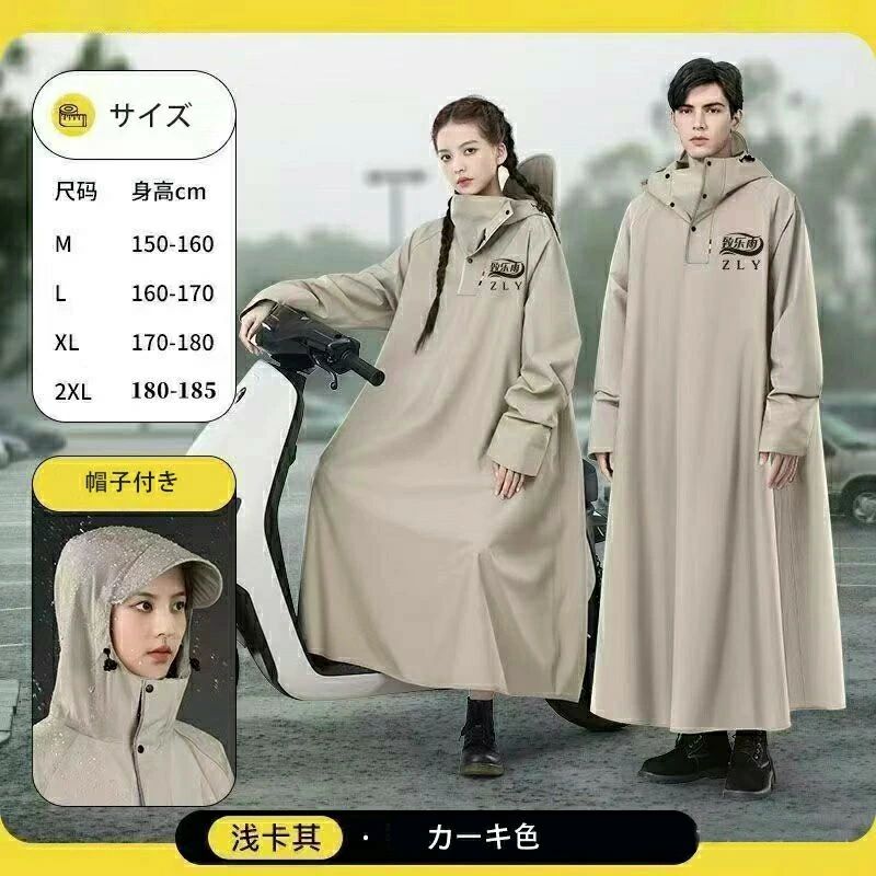 商品スペック商品特徴 優れた撥水性軽くて撥水性に優れ生地を使用しておりますので機能性も抜群です。プラスチック製ファスナーファスナーとスナップボタンの二重構造になって、水の浸入をブロックします。雨を防ぐ口元にはスナップボタンが付いていますので、雨を防げます。ゴム仕様袖口袖口にゴムが入っており、手元からの水の浸入を抑えます。反射テープ付き反射テープを前後に施しておりますので、見えない背中側も車からはしっかり確認できる!夜間でも安心安全にご利用頂けます。ふくらはぎまでしっかりカバー長めの丈ですが裾があまり広がらないので車輪などの巻き込みは防止でき、自転車に乗る時に安心。商品仕様 商品名:レインコートカラー:カーキ色 / インクグリーン / ライトブルー / ライトグレー / ブラックサイズ: M【150-160】 L【160-170】 XL【170-180】 XXL【180-190】注意事項 安全のためにマジックテープ、紐をしっかりと締めて緩みのないようにしてお使いください 商品リニューアル等によりパッケージ等は変更となる場合があります。掲載画像はイメージであり、実際の製品とは多少異なる場合があります。輸入品につき、若干のキズや汚れがある場合がございます。製品の仕様は品質の向上改善のため、予告なく変更される場合が御座います。メーカー希望小売価格はメーカーカタログに基づいて掲載していますメーカー希望小売価格はメーカーカタログに基づいて掲載しています商品スペック商品特徴 優れた撥水性軽くて撥水性に優れ生地を使用しておりますので機能性も抜群です。プラスチック製ファスナーファスナーとスナップボタンの二重構造になって、水の浸入をブロックします。雨を防ぐ口元にはスナップボタンが付いていますので、雨を防げます。ゴム仕様袖口袖口にゴムが入っており、手元からの水の浸入を抑えます。反射テープ付き反射テープを前後に施しておりますので、見えない背中側も車からはしっかり確認できる!夜間でも安心安全にご利用頂けます。ふくらはぎまでしっかりカバー長めの丈ですが裾があまり広がらないので車輪などの巻き込みは防止でき、自転車に乗る時に安心。商品仕様 商品名:レインコートカラー:カーキ色 / インクグリーン / ライトブルー / ライトグレー / ブラックサイズ: M【150-160】 L【160-170】 XL【170-180】 XXL【180-190】注意事項 安全のためにマジックテープ、紐をしっかりと締めて緩みのないようにしてお使いください 商品リニューアル等によりパッケージ等は変更となる場合があります。掲載画像はイメージであり、実際の製品とは多少異なる場合があります。輸入品につき、若干のキズや汚れがある場合がございます。製品の仕様は品質の向上改善のため、予告なく変更される場合が御座います。メーカー希望小売価格はメーカーカタログに基づいて掲載していますメーカー希望小売価格はメーカーカタログに基づいて掲載しています