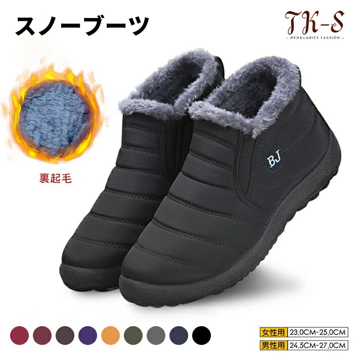 裏起毛スノーシューズ。女性用22.5CM-25.5CM、男性用24.5CM-27.5CM。まっ冬対策男女兼用!ライニング全体的にファー付きのため、暖かくて、柔らかくて、装着感が素敵!どんなに寒くでも、あなたの足と温もりを伴う。軽量&滑り止めソール。PU(ポリウレタン)使用、優れた耐摩耗性や弾力性、耐油性があり、ゴムと比較して軽いなどの特徴があります。滑りにくい耐摩耗性、安定したグリップ普段な環境では、滑り止め機能が効きます。撥水効果アッパー。このスノーブーツは水効果がある アッパー材質を使用し水や雪が浸入しにくい 構造となっています。完全防水ではありません・雨や雪の中の長時間の着用時には・水が浸み込む場合があります。落ち着いたカラーはどんなファッションも取り入れや すく男女問わずお薦めのデザインです。街履きもOKオシャレなスノーブーツなので寒い季節に重宝の一点です。 サイズ22.5cm 23cm 23.5cm 24cm 24.5cm 25cm 25.5cm 26cm 26.5cm 27cm 27.5cmサイズについての説明サイズ:22.5cm 23cm 23.5cm 24cm 24.5cm 25cm 25.5cm 26cm 26.5cm 27cm 27.5cm素材綿 ポリエステル PU色ブラック(メンズ) ブルー(メンズ) ブラック(レディース) ワインレッド(レディース)備考 ●サイズ詳細等の測り方はスタッフ間で統一、徹底はしておりますが、実寸は商品によって若干の誤差(1cm~3cm )がある場合がございますので、予めご了承ください。●製造ロットにより、細部形状の違いや、同色でも色味に多少の誤差が生じます。●パッケージは改良のため予告なく仕様を変更する場合があります。▼商品の色は、撮影時の光や、お客様のモニターの色具合などにより、実際の商品と異なる場合がございます。あらかじめ、ご了承ください。▼生地の特性上、やや匂いが強く感じられるものもございます。数日のご使用や陰干しなどで気になる匂いはほとんど感じられなくなります。▼同じ商品でも生産時期により形やサイズ、カラーに多少の誤差が生じる場合もございます。▼他店舗でも在庫を共有して販売をしている為、受注後欠品となる場合もございます。予め、ご了承お願い申し上げます。▼出荷前に全て検品を行っておりますが、万が一商品に不具合があった場合は、お問い合わせフォームまたはメールよりご連絡頂けます様お願い申し上げます。速やかに対応致しますのでご安心ください。