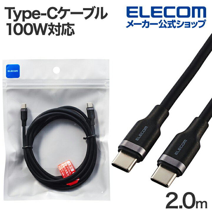 ■スマートフォンもパソコンも、これ1本で高速充電!USB2.0、USB Power Delivery(最大100W)対応のUSB Type-C(TM) - USB Type-Cケーブルです。なめらかな手触りで、やわらかく扱いやすいシリコン素材を採用しています。■スマートフォンもパソコンも、これ1本で高速充電!やわらかく扱いやすいUSB Type-C(TM) - USB Type-Cケーブルです。 ■USB Type-Cポート搭載のAC充電器・モバイルバッテリー・パソコンと、USB Type-Cポート搭載のスマートフォン・タブレットなどを接続し、充電やデータ転送ができます。 ■シリコン素材を採用した、なめらかな手触りのケーブルです。やわらかく絡みにくいのが特長で、狭い場所への配線や、持ち運びにも便利です。 ■約90,000回の屈曲に耐えられる優れた耐久性を実現したケーブルです。 ■※品質検証や規格ロゴ認証など、総合的な第三者検証ソリューションを提供するアリオン株式会社にてUSB規格に基づいた試験での屈曲回数 ■コネクター部分には高級感のあるアルミ装飾を施しています。 ■USB2.0に対応しています。 ■最大480Mbpsの高速データ転送が可能です。 ※理論値 ■USB Power Deliveryに対応し、最大100Wで充電が可能です。スマートフォンやタブレット、パソコンなどに使用できます。 ■※接続する機器がUSB Power Deliveryに対応している必要があります。 ■※ご使用になる機器の性能によって、供給される電流値が異なります。 ■USB Type-Cコネクターは、裏、表に関係なくポートに挿し込めます。 ■サビなどに強く信号劣化を抑える金メッキピンを採用しています。 ■難燃性の素材を使用し、安全性を高めています。 ■外部ノイズの干渉から信号を保護する2重シールドケーブルを採用しています。 ■※USB Type-C and USB-C are trademarks of USB Implementers Forum ■EUの「RoHS指令(電気・電子機器に対する特定有害物質の使用制限)」に準拠(10物質)した、環境にやさしい製品です。 ■自社環境認定基準を1つ以上満たし、『THINK ECOLOGY』マークを表示した製品です。 ■環境保全に取り組み、製品の包装容器におけるプラスチック重量を、社内基準製品より20%以上削減した製品です。 ■環境保全に取り組み、製品の包装容器が紙・ダンボール・ポリ袋のみで構成されている製品です。■コネクター形状:USB Type-C(TM)プラグ - USB Type-Cプラグ■対応機種:USB Type-Cポート搭載のAC充電器・モバイルバッテリー・パソコンおよび、USB Type-Cポート搭載のスマートフォン・タブレットなど■規格:Hi-Speed USB(USB2.0)■対応転送速度:最大480Mbps ※理論値■USB Power Delivery対応:○■対応電圧/電流:最大20V/5A(100W)■DisplayPort(TM) Alternate Mode対応:×■プラグメッキ仕様:金メッキピン■シールド方法:2重シールド■ツイストペアケーブル(通信線):○■ケーブル長:約2m ※コネクター含まず■ケーブル太さ:約4.3mm■カラー:ブラック■パッケージ形態:袋+ステッカー■保証期間:1年間■環境配慮事項:EU RoHS指令準拠、THINK ECOLOGYマークエレコムダイレクトショップ