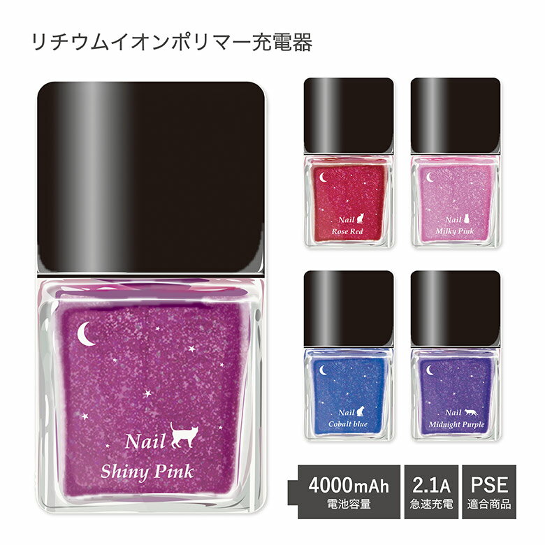 急速充電対応 モバイル USB出力 スマホ充電器 スリム microUSBケーブル付き レディース アイフォン アンドロイド ピンク 赤 青 可愛い オシャレ【PSE適合品】 No149 マニキュアネコ 受注生産 急速充電 USB出力 リチウムイオンポリマー充電器 2.1A 4000mAh モバイルバッテリー microUSBケーブル付属 iPhone Android