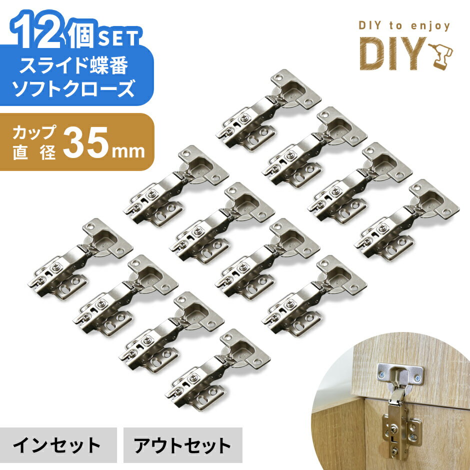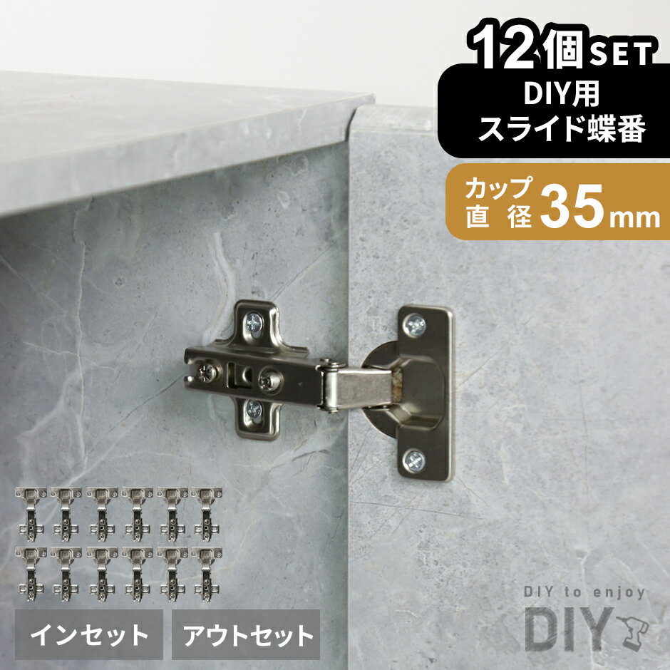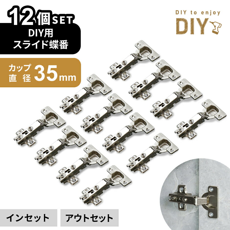蝶番 スライド蝶番 12個セット DIY キャビネット ドア 家具 パーツ ちょうばん おうちで楽しくDIY! 直径 35mm パーツ交換 シルバースライド蝶番 12個セット DIY キャビネット ドア パーツ インセット アウトセット 補修 ちょうばん ちょうつがい 直径35mm 蝶番 ソフトクローズ パーツ交換 diy シルバー がたつき調整 自分だけのオリジナルインテリアが作れる スライド蝶番12個セット ドリス 送料無料