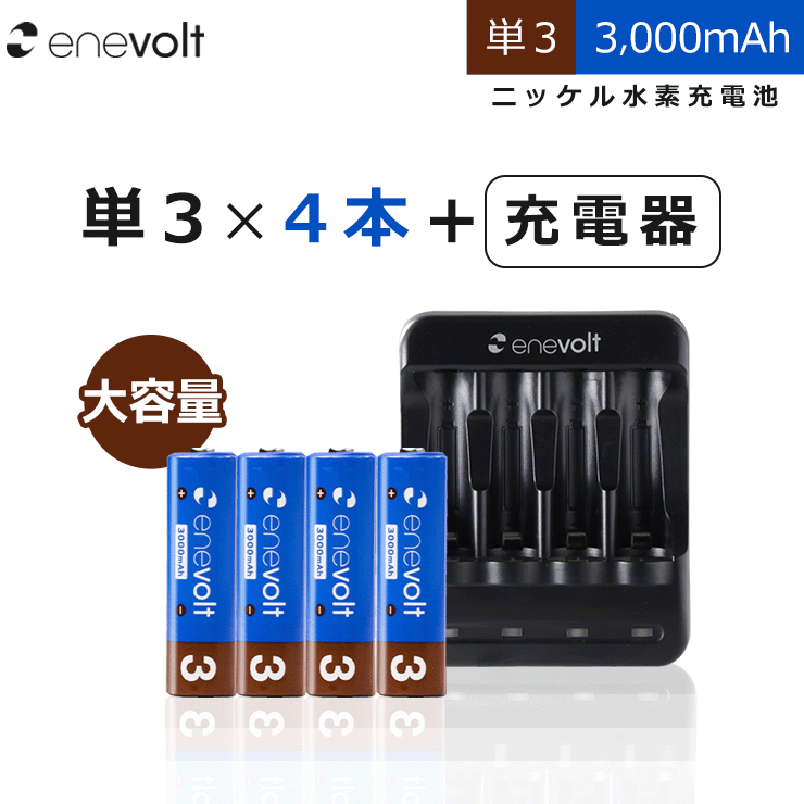 エネボルト 単3形 充電池 充電器セット 4本 セット ケース付 単3型 3000mAh 単3 電池 乾電池 単三 互換 充電器 4本セットエネボルト 単3 3000mAh 充電池 4本 USB 充電器 セット ケース付 単3型 単3形 単三 USB 充電 電池 充電器 単三 充電電池 充電式電池 ラジコン おすすめ 充電地