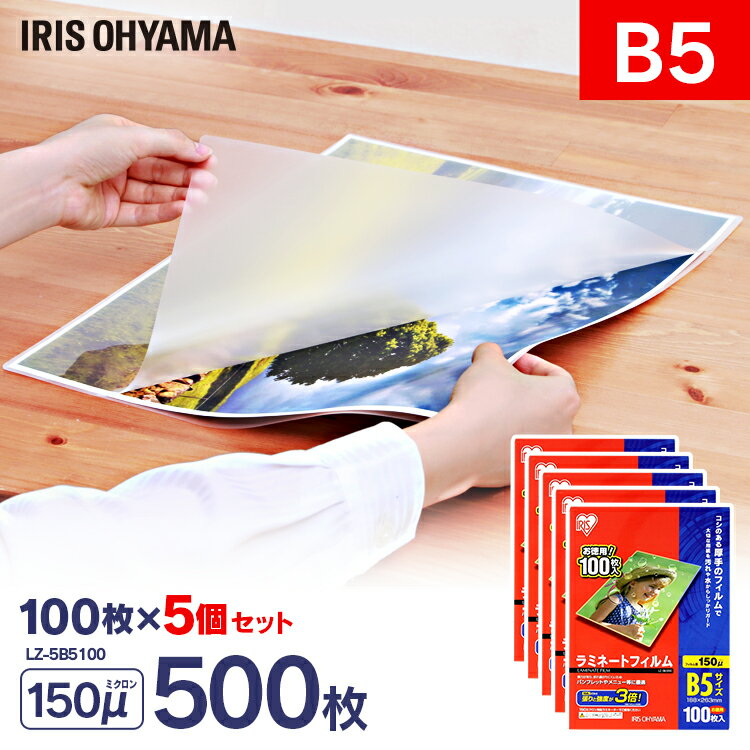税込3,980円以上ご注文で送料無料(一部除く)♪ラミネートフィルム b5 100枚 150μ 5個セット 大容量150ミクロン 厚手 アイリスオーヤマ LZ-5B5100 ラミネーター フィルム パウチフィルム メニュー表 パンフレット 透明度 耐水性【rami】
