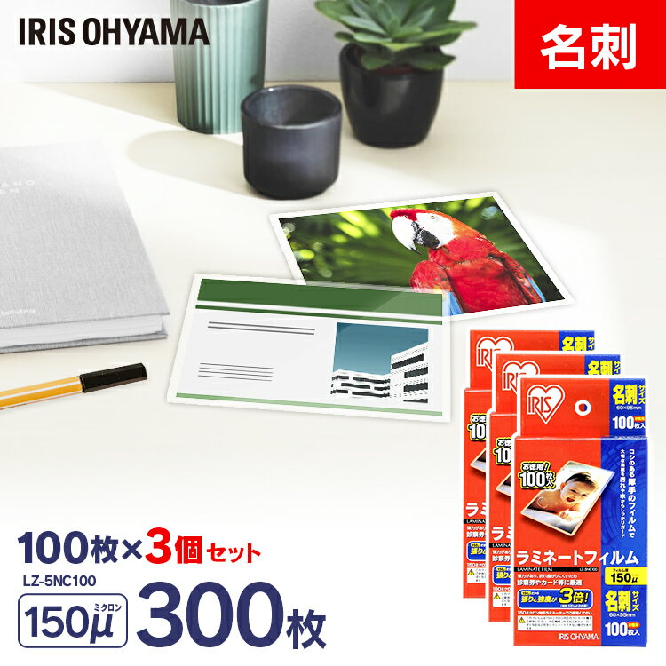 ラミネートフィルム 名刺サイズ 100枚 150μ 3個セット150ミクロン 厚手 名刺 アイリスオーヤマ LZ-5NC100 パウチフィルム ラミネーター フィルム 診察券 カード 耐水性 透明度