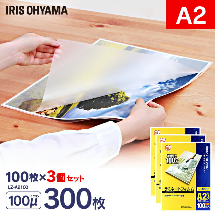 ラミネートフィルム a2 100枚 100μ 3個セット100ミクロン アイリスオーヤマ LZ-A2100 ラミネーター フィルム 図面 ポスター 写真 メニュー表 耐水性 透明度