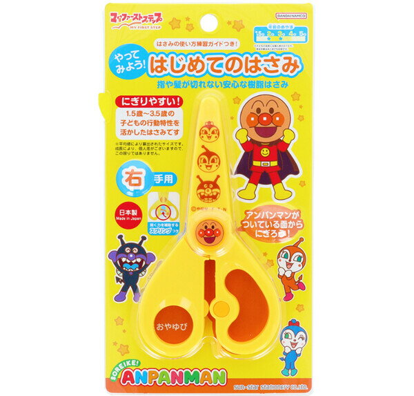 指や髪が切れない安心な樹脂はさみ【5点までメール便OK】 サンスター文具 それいけ! アンパンマン やってみよう!はじめてのはさみ 右手用 練習用はさみ マイファーストステップ 5440010A