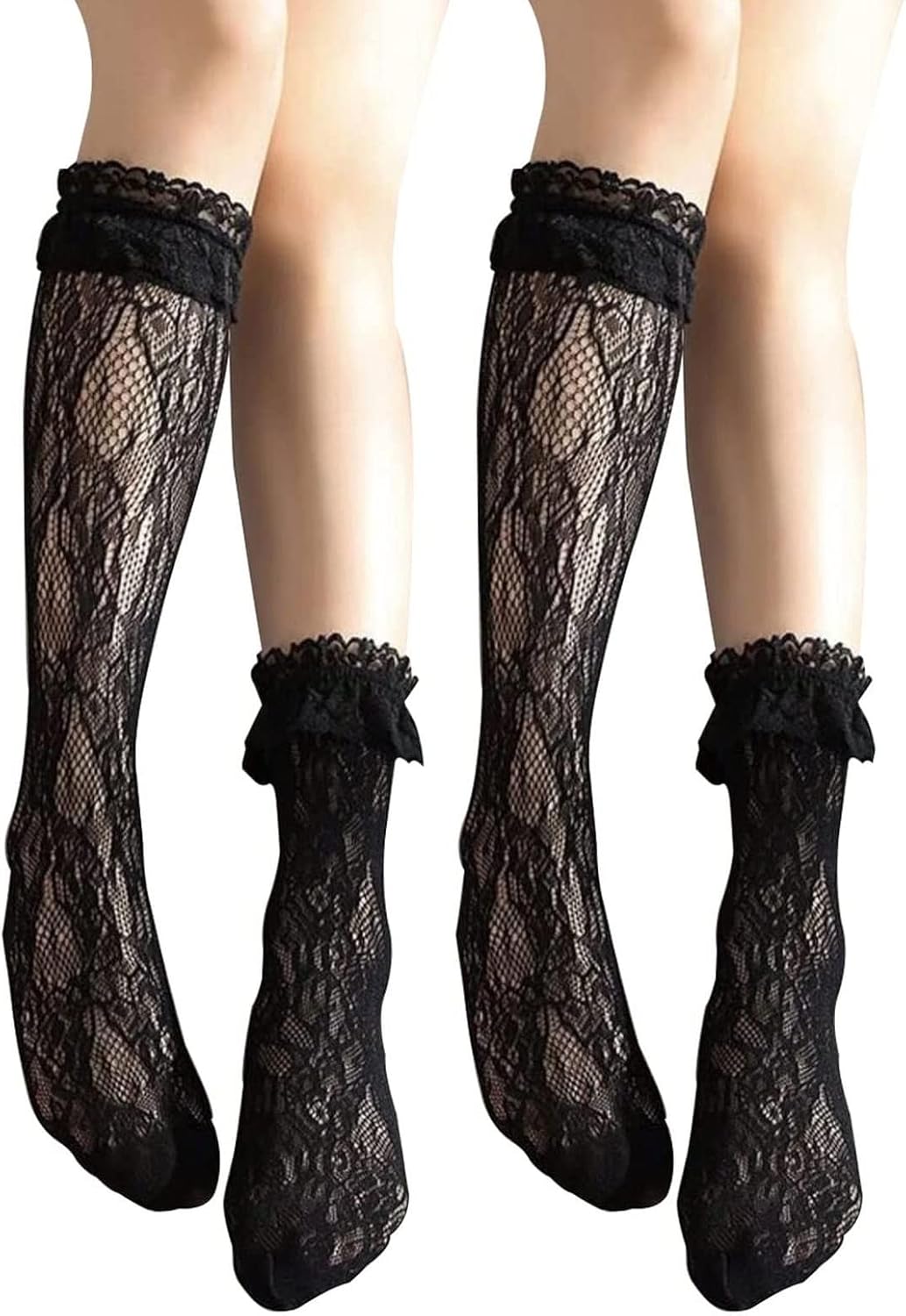 レースのソックス ハイソックス レディース 可愛 膝下丈靴下 かわいい ロリータ 透かし美脚 着圧 や制服用 通学 通勤 発表会 卒園式 卒業式 入学式 結婚式 黒