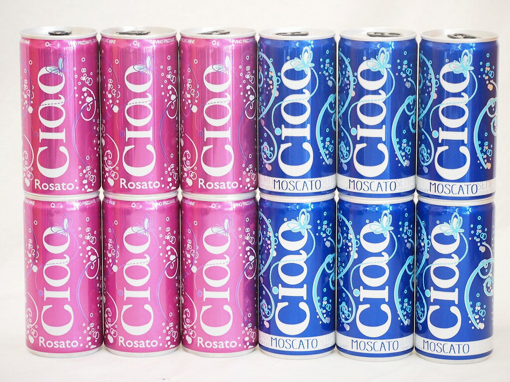 お誕生日 贈り物 御進物 ギフト包装 熨斗 メッセージカード無料飲みきりイタリアワイン缶12本セット(チャオ モスカート 甘口微発泡白ワイン チャオ ロザート やや辛口微発泡ロゼワイン) 200ml×12本