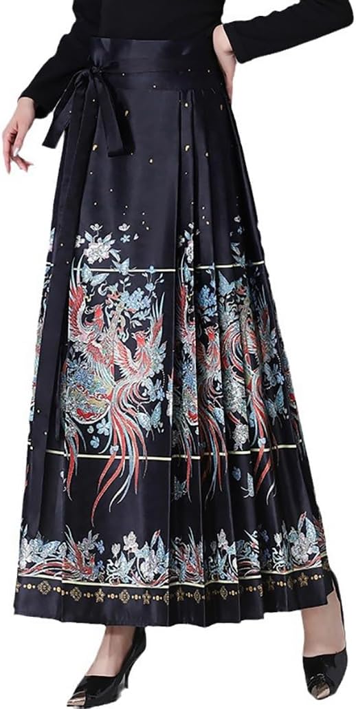 巻きスカートレディース ロングスカート プリント ハイウェスト スリット ロング丈 きれいめ チャイナ風 スカート チャイナドレス 民族風 漢服 唐装 馬面スカート プリーツスカート 学園祭 文化祭