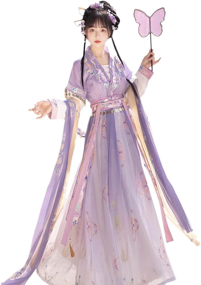 漢服集合 コスプレ衣装 かんふく+漢服用ウィッグ 唐装 レディース 花柄 鶴 中国古代宮廷風 女の子 チェストスカート スーツ マキシー丈 写真撮影 古風 ステージ衣装 (M ホワイト(3点セット)