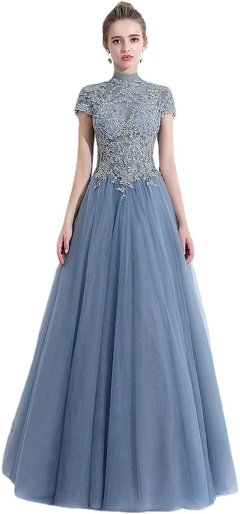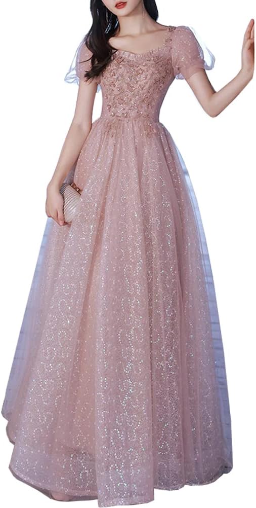 レディース イブニングドレス ドレス ワンピース ロングワンピース チュールワンピース フォーマルドレス 半袖 フォーマル エレガント ハイウエスト スリム 星空 結婚式 演奏会 パーティー