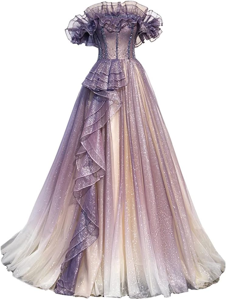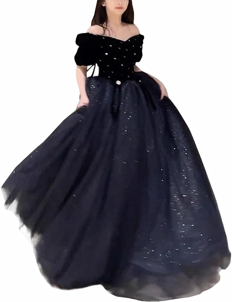 -------商品詳細------- ゴージャスなスカートのデザイン、おとぎ話のプリンセスのように、エレガントでスタイリッシュに。スパンコールのチュールワンピースは、歩く間に流れる銀河のようなものです。 ブラックは季節を選ばないフォーマルシーンの王道カラー。エレガントなロングドレスは女性の魅力を演出します。美しいドレス、まばゆい光がフラッシュの光に照らされて、まばゆいほどに輝いています。 普段使いから結婚式、パーティー、二次会、披露宴、入学式、卒業式、発表会、演奏会、招待状、入学式、ビジネス、フォーマルシーン、など様々でいろんなシーンにご利用いただけ。 襟元の部分のデザインはきれいな鎖骨と細い首が現れています、美しくて魅力的に見えます。オフショルダーデザインなのでデコルテラインやフェイスラインをすっきり魅せることができます。 お姫様ドレスがきれいなAラインは美しいラインを描き、優雅である印象を実現。背中はリボンで、若干のサイズ調整が可能です。ウエストから裾にかけてAラインの綺麗なシルエットになっているためスタイルアップも期待できます。説明 -