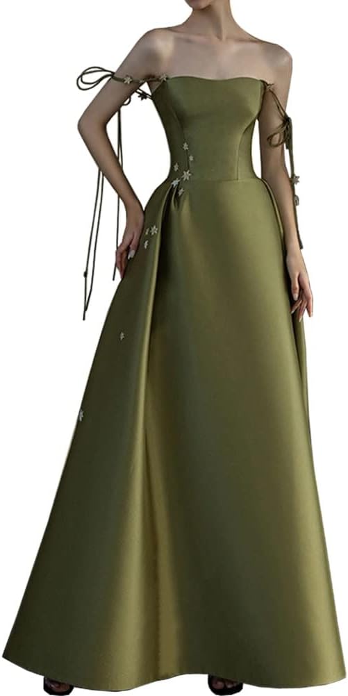 -------商品詳細------- 【使用シーン】結婚式、披露宴、二次会、パーティー、演奏会、二次会、招待状、卒業式、入学式、感謝パーティー、学校行事など、華やかな場で活躍します。 肌触りが良く、軽くて着心地も良く、ドレス全体に上質なサテン素材で使用することで、華やかさと上品なイメージを一層引き立たせ、上品な印象を与えてくれます。 花嫁ドレスがゴージャスなスカートのデザイン、おとぎ話のプリンセスのように、エレガントでスタイリッシュに。オフショルダーデザインと女性らしさあふれるシルエットのドレス。デコルテから胸元と肩を美しくセクシーに魅せます。オフショルダーデザインなのでデコルテラインやフェイスラインをすっきり魅せることができます。 タイトウエストデザインは品のある女性らしいラインを演出してくれ、高貴かつ優雅です。通常よりもウエストラインが上にあるので、エレガントなスタイルを演出してくれます!背中はリボンで、若干のサイズ調整が可能です。 シンプルで上品な大人の女性を演出、女性らしさが際立つドレスです。女性らしく大人っぽい魅力を引き出してくれます。程良く綺麗に広がるフレアシルエットが美しいスカート。説明 -