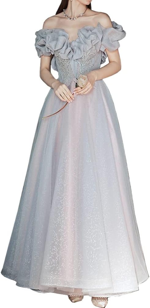 レディース ロングドレス ドレス パーティードレス イブニングドレス ワンピース チュールワンピース フォーマル エレガント ゴージャス オフショルダー パーティー 演奏会 卒業式 発表会