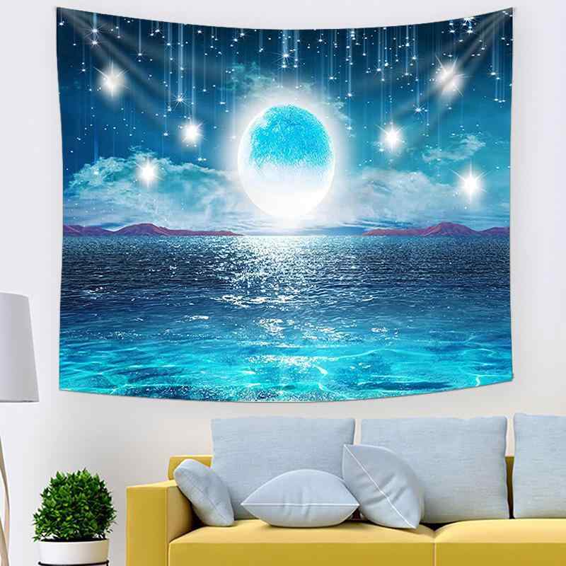 【予約販売5~12営業日での発送】タペストリー 幻想的な水面と月 流星群の絶景 壁掛け おしゃれなリビング 寝室用インテリア ルームデコレーション 大判 ウォールアート モダン ポリエステル素材 ウォッシャブル