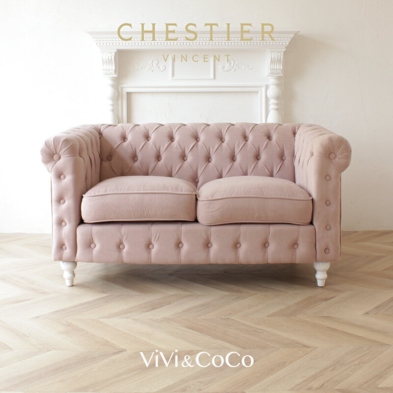 ViVi&CoCo ビビアンドココ ソファー 2人掛けソファ 二人がけ 2人用 コンパクトソファ ロマンチック 白脚 アンティーク ソファ おしゃれ インテリア CHESIER(チェスティア)ソファー 二人 2人掛けソファ アンティーク ソファ 二人用ソファ 2人 2人用 二人がけ チェスターフィールド シャーベットピンク 布地 アンティーク調家具 おしゃれ ロマンチック 英国調 イギリス インテリア エレガント VC2F237PW