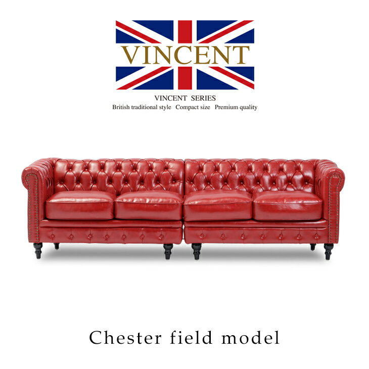 オシャレで広々使える4人掛け! ヴィンセント VINCENT チェスターフィールドソファ アンティーク ソファ 4人掛けソファ セパレート 組み合わせソファ ビビアンドココヴィンセント ソファー ソファ 合皮 4人掛けソファ 4人 4人用 チェスターフィールド ソファ アンティーク ソファー ユニット式 モジュール式 ソファ 組み合わせソファ レッド PUレザー 英国調 アンティーク調家具 おしゃれ インテリア VC4P63K